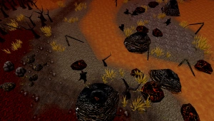 - Description: scorched volcanic world